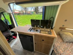 Furgoneta camper gran volumen, totalmente autónoma y equipada, permite viajar y dormir 4 personas, tiene baño completo con agua caliente, ducha interior y exterior, wc químico, batería de gran capacidad y placas solares dispone también de cocina completa, vajilla y todos los utensilios necesarios para tu viaje, sillas de camping, calzos, oscurecedores etc... Lista y preparada para tu aventura camper. Además somos profesionales del sector y te explicaremos como funciona todo paso a paso y te daremos algunos tips para...